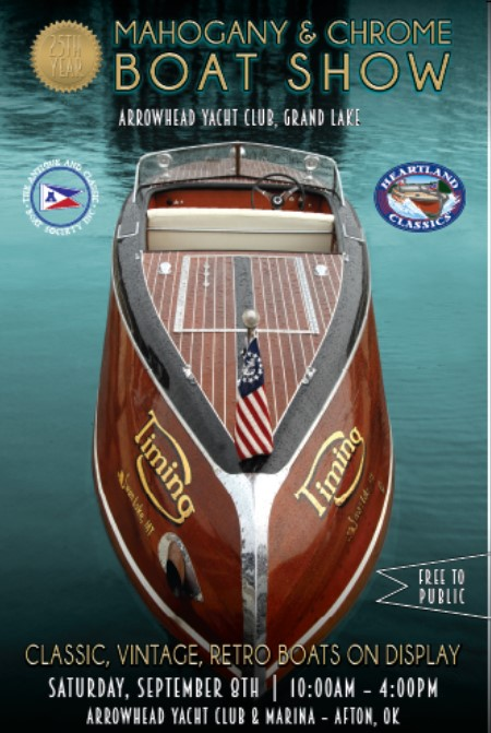 This is the 25th year for the Mahogany & Chrome Classic Boat Show of Heartland Classics Chapter of the Antique Classic Boat Society; traditionally held on Grand Lake O' the Cherokees in NE Oklahoma.